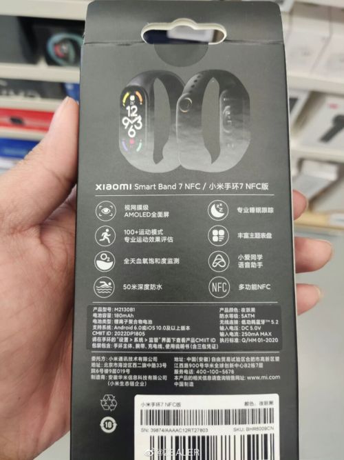미밴드7은 리테일 박스를 통해 AMOLED 디스플레이, 100개 이상의 스포츠 모드, 혈중산소포화도 모니터링, 5ATM 방수, 수면 모니터링, 음성 어시스턴트, 다기능 NFC, 180mAh 배터리를 탑재한 채 안드로이드 6.0 또는 iOS 10 이상 기기에서 사용 가능한 것이 확인되었으며, 전박보다 큰 1.62인치인 것이 특징입니다.