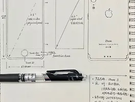 특히, 전면 상단 수화부내에 셀피용 카메라 및 센서가 위치한 것으로 추정되며, 좌/우로 듀얼 디스플레이가 위치하고, 베젤폭이 거의 없는 제로베젤 스타일을 보여줘 최근 유출된 아이폰8과 유사한 형태의 OLED 디스플레이가 적용될 것을 추정할 수 있습니다.